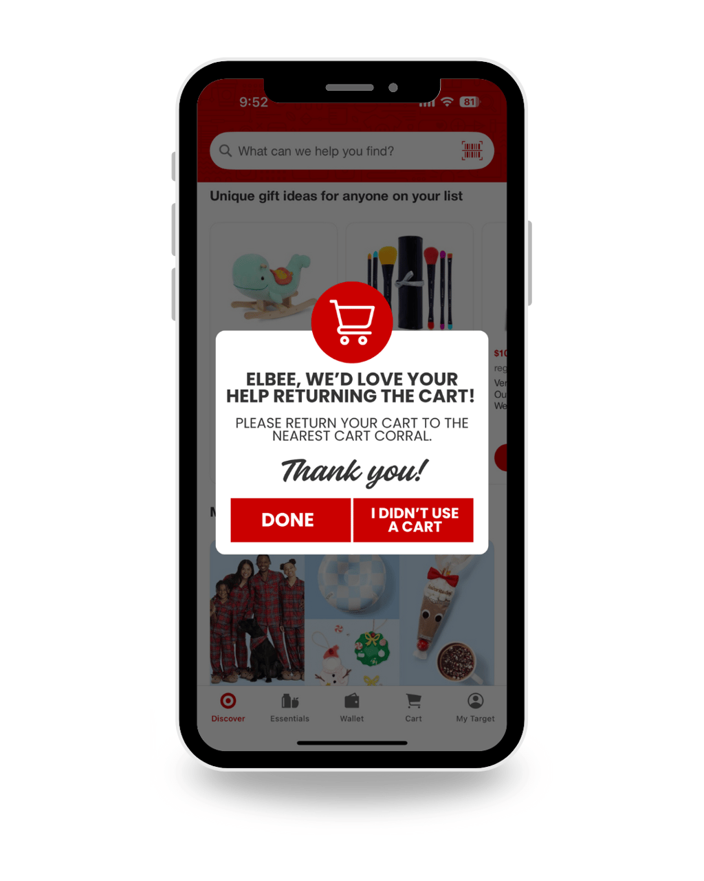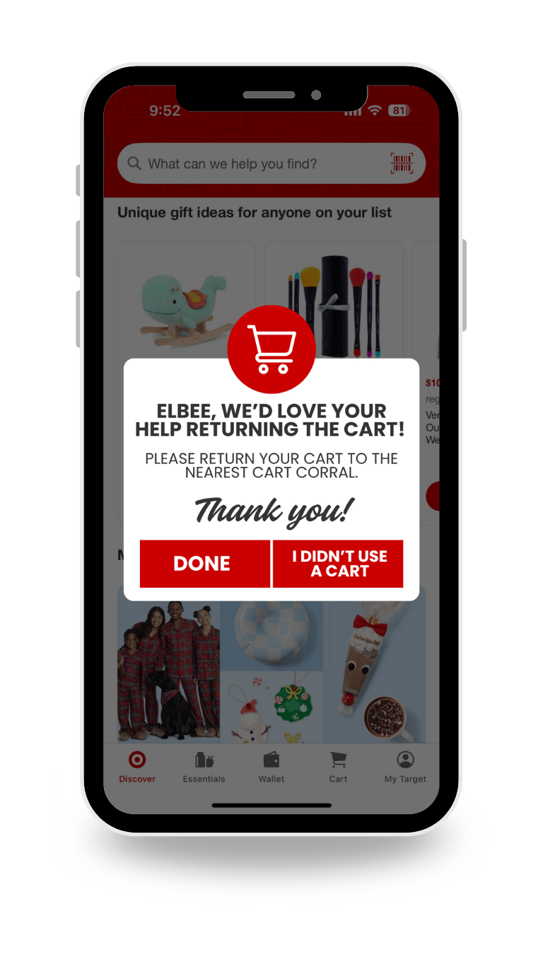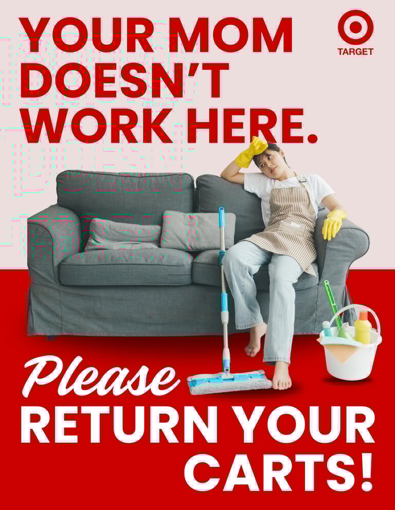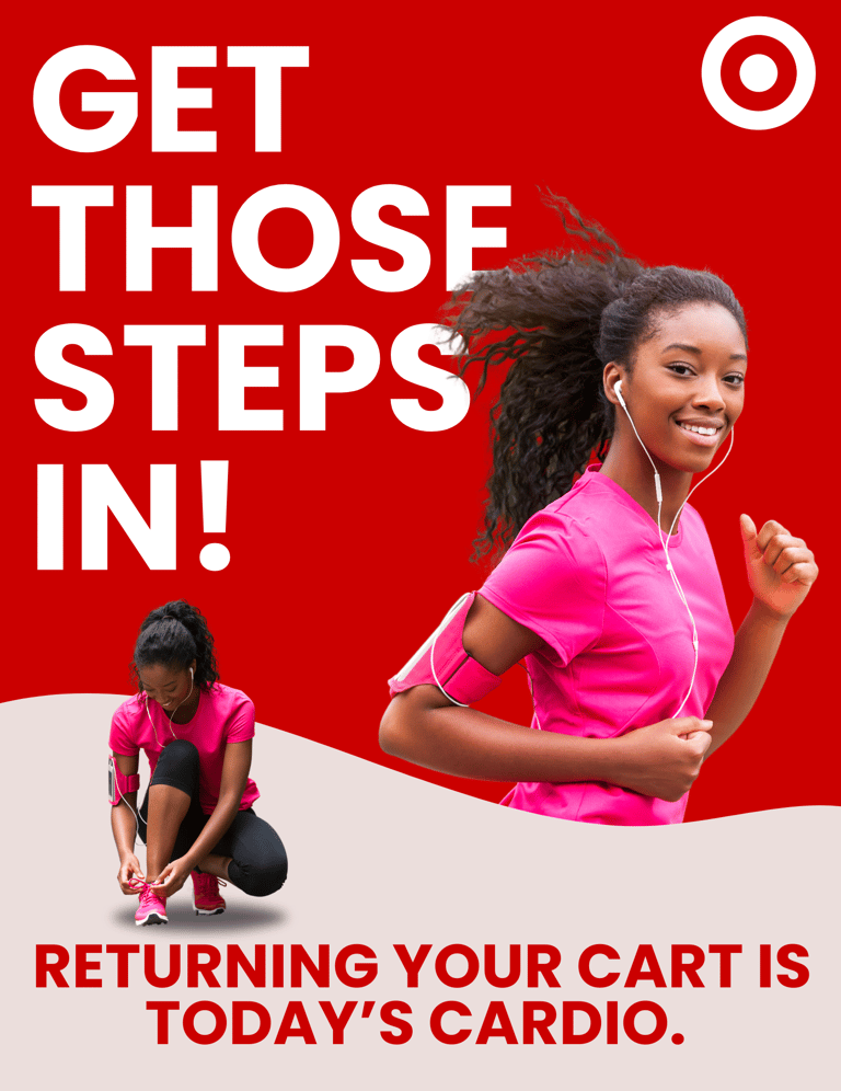 created a nudge campaign called "roll your carts back," focused on encouraging target shoppers to return their shopping carts to the cart corral. designed the visual components of the nudge campaign, including the flyers, stickers, and a push notification.