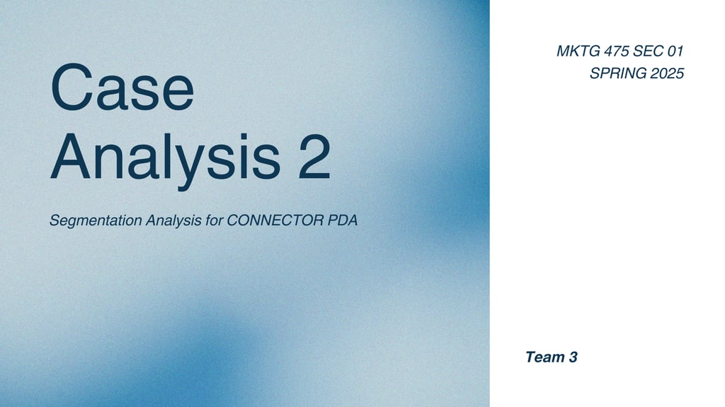 led multiple case studies in a marketing analytics course, analyzing scenarios provided by the professor. in addition, led the term project where we analyzed and created a case from scratch. this entailed deciding on a topic and analysis technique, creating the survey, and collecting the data. overall, worked to coordinate team member roles, set deadlines, create presentations, finalize deliverables, and provide support to team members in needed areas.